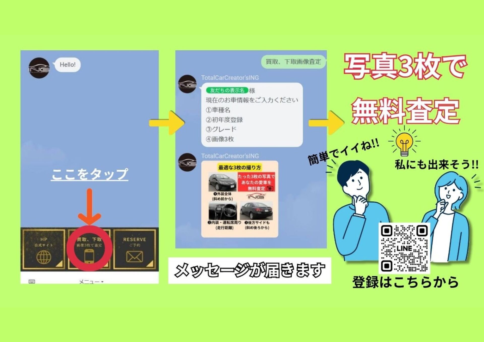 ②お車情報と3枚の写真を送るだけ‼️